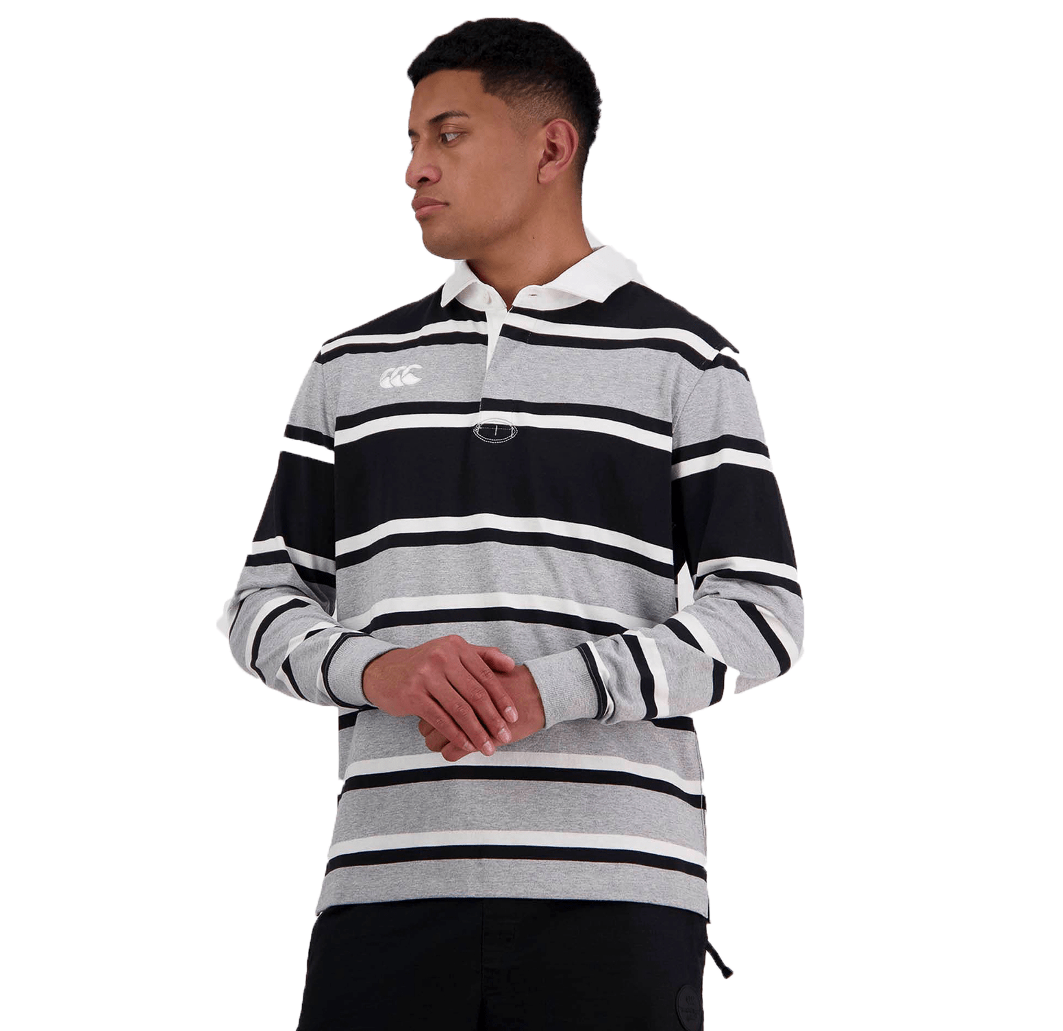 Discover your wardrobe essential: The Fundamentals Rugby. Engineered for comfort, style, and timeless appeal, this piece embodies instant classic status. Horizontal stripes elegantly complement the drill collar, while rib knit cuffs and a side seam guarantee flexibility.